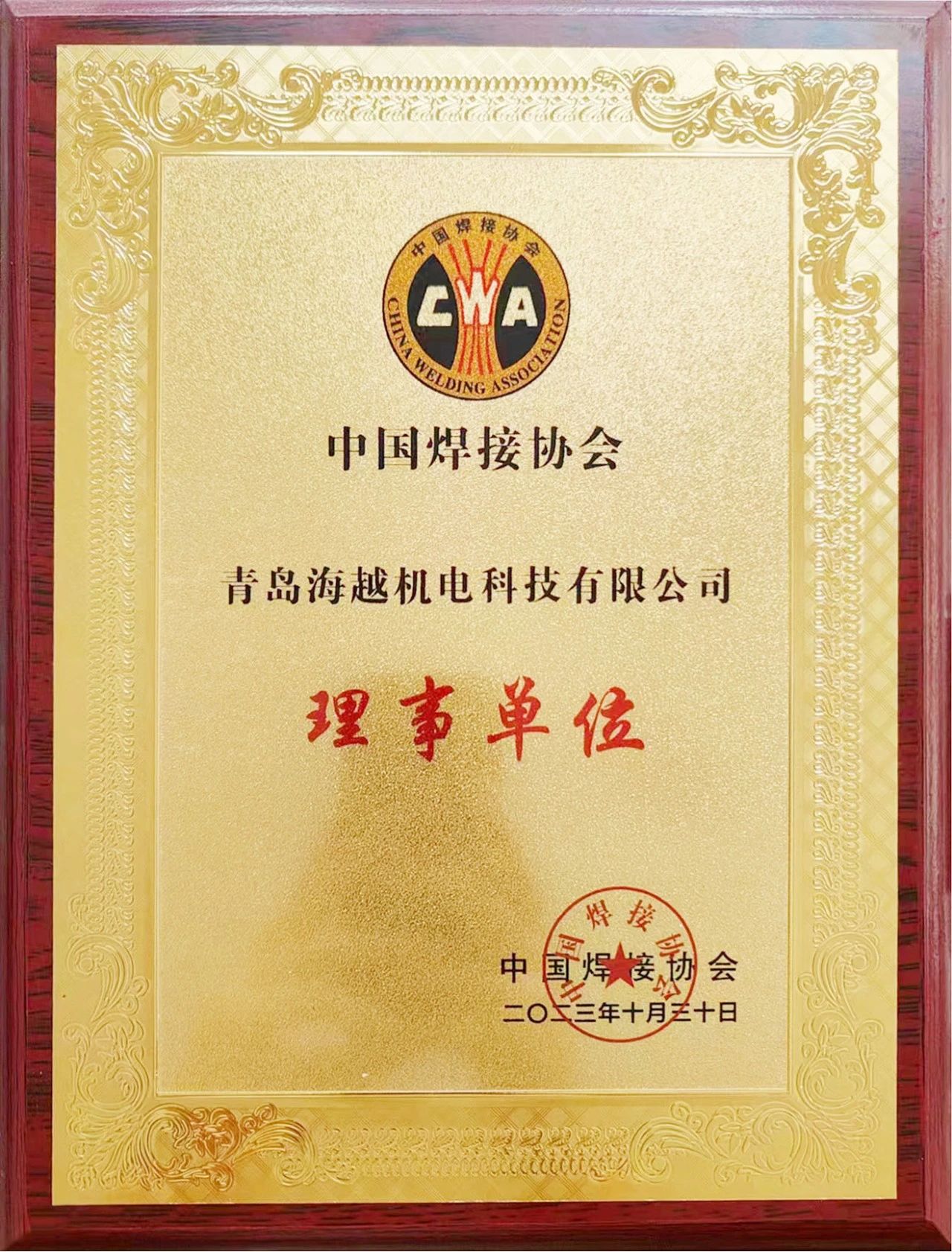 同期召開的“第八屆理事會第四次(擴(kuò)大)會議暨第八屆常務(wù)理事會第六次(擴(kuò)大)會議”推舉青島海越機(jī)電科技有限公司為中國焊接協(xié)會理事單位,并頒發(fā)證書。